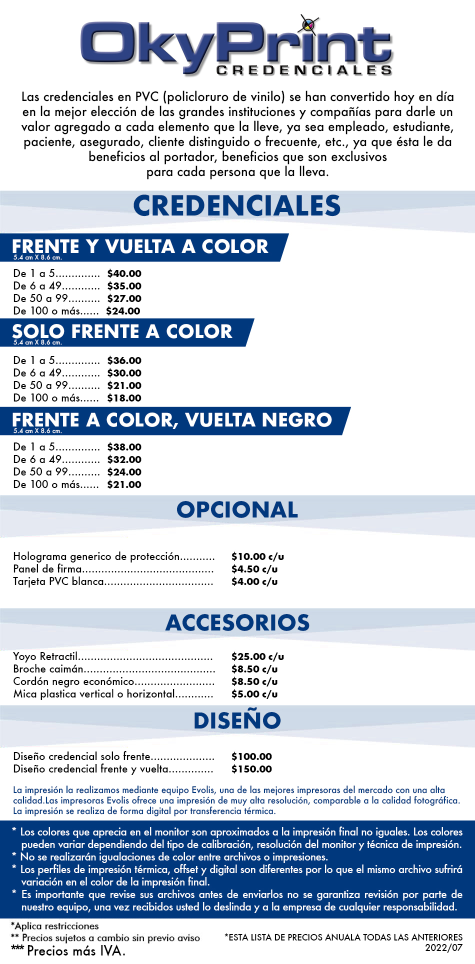 Costos - OkyPrint Credenciales